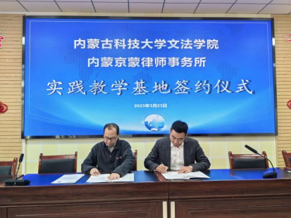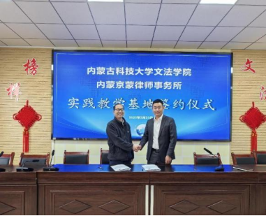 党委副书记兼副院长唐国桥与内蒙京蒙律师事务所主任段普复就共建实践教学基地的相关事宜进一步交换了意见,并举行了签约仪式。