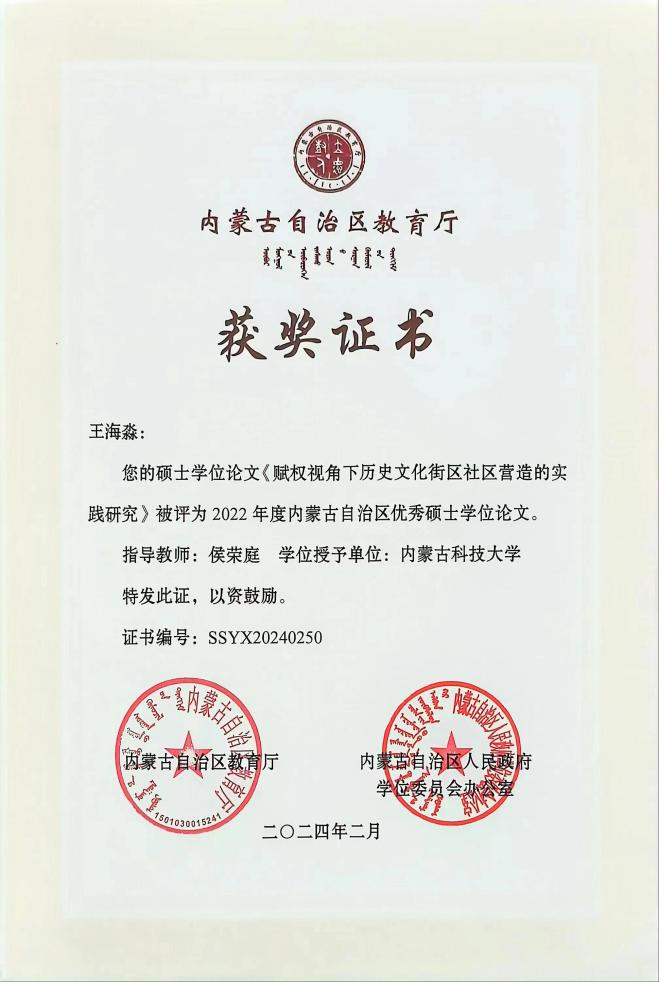 鉴黄师 社会工作研究生王海淼荣获内蒙古自治区2022年度优秀硕士学位论文
