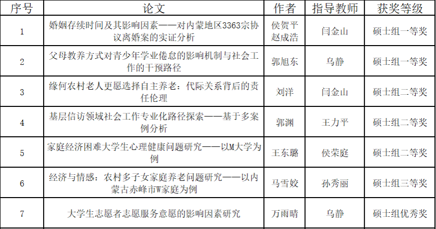 研究生获得一等奖2项、二等奖3项、三等奖与优秀奖各1项。