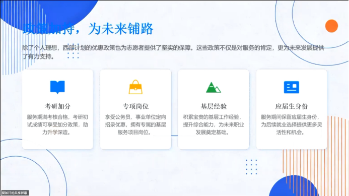 为让同学们全面了解西部计划的价值与福利,爱如汗详细解读了项目的多重政策红利。服务期满考核合格后,志愿者考研初试可享总分加10分优惠,公务员、事业单位招录拥有定向专属岗位,两年服务期直接计入基层工作经验,服务期间及期满后仍保留应届生身份,为职业发展拓宽路径,各地区还会根据实际情况推出因地制宜的配套政策,为志愿者提供全方位保障。