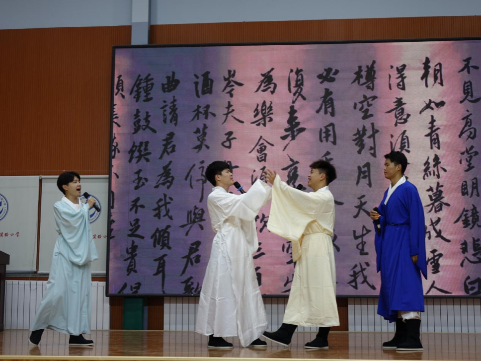 学生为此次活动贡献了多彩多样的精彩演出,萤火志愿服务队志愿者江睿琦、路致增的舞蹈节目《晚夜微雨问海棠》,仝子涵、苏文豪等同学的经典诵读节目《诵经典 品书香 爱中华》,仝子涵、赵瑜亮、吴政权、张居正等同学的情景剧《将进酒》,赵瑜亮同学的太极串烧等,不仅增强了学生们对传统节日的文化认同和情感认同,也有助于传承和弘扬端午节这一重要的中华民族文化遗产,让人们更真切地感受到端午节的独特魅力,同时也让观众得以欣赏各种艺术形式,丰富精神生活。