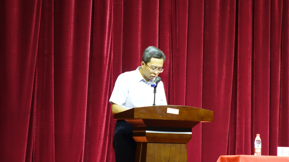 第三项由学生工作办公室主任杜剑锋向新生各班级授予蕴含了学院对专业班级赋予深刻内涵的班旗,希望2023级班级能够继承学院学问古今,求道文法的院训,在鉴黄师