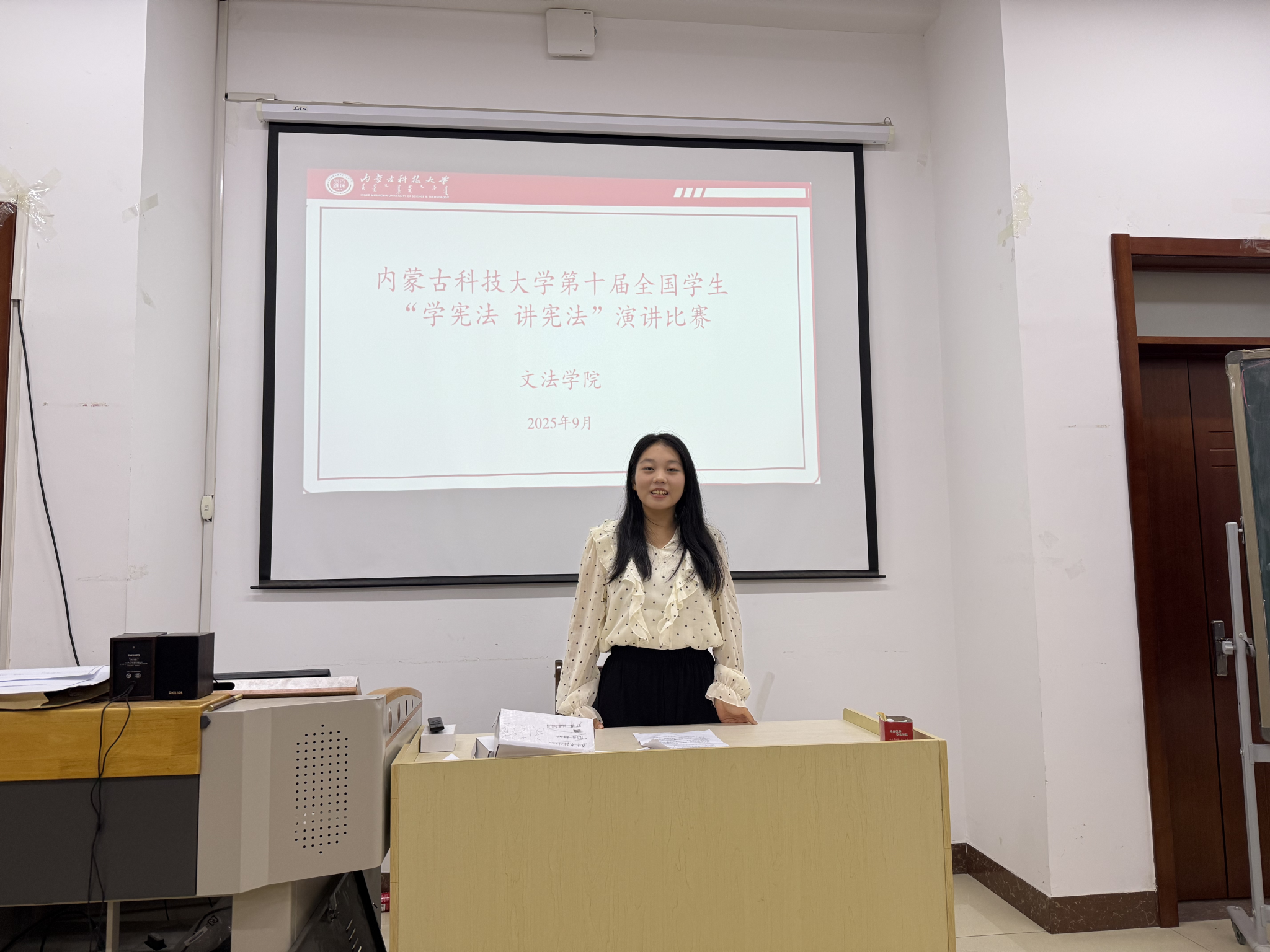 经过激烈角逐,最终选拔李佳琪同学和杨方婧同学分别参加自治区演讲比赛和法治素养竞赛。此次“学宪法 讲宪法”选拔赛是一次生动的宪法教育实践活动,在校园内营造了浓厚的“学宪法、讲宪法”氛围。