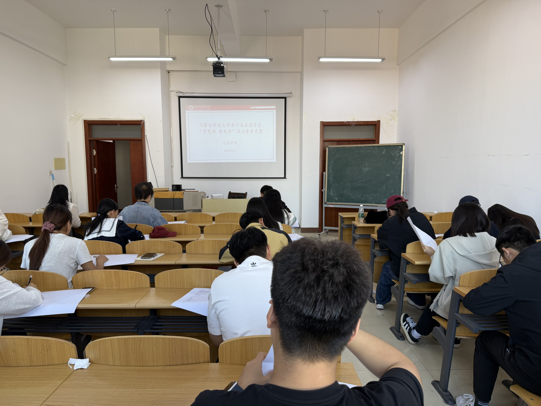 比赛分为演讲比赛和法治素养知识竞赛两部分,全面考察选手对宪法知识的理解掌握程度、语言表达能力及综合素养。法治素养采用笔试形式,考场上,选手们认真研读题目,沉着应答;演讲比赛现场,选手们结合自身学习生活实际阐述对宪法精神的理解,展现了科大学子积极向上的精神风貌。