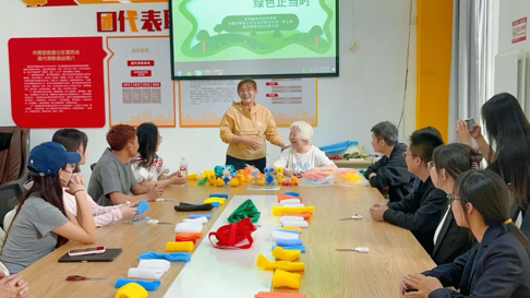 通过利用多彩的泡沫网,大学生与小学生积极互动,在一双双巧手的再创造下变成美轮美奂的手工品,让旧物获得了新生。同学们脸上洋溢着快乐的笑容,展现出对废弃物品循环利用的浓厚兴趣。