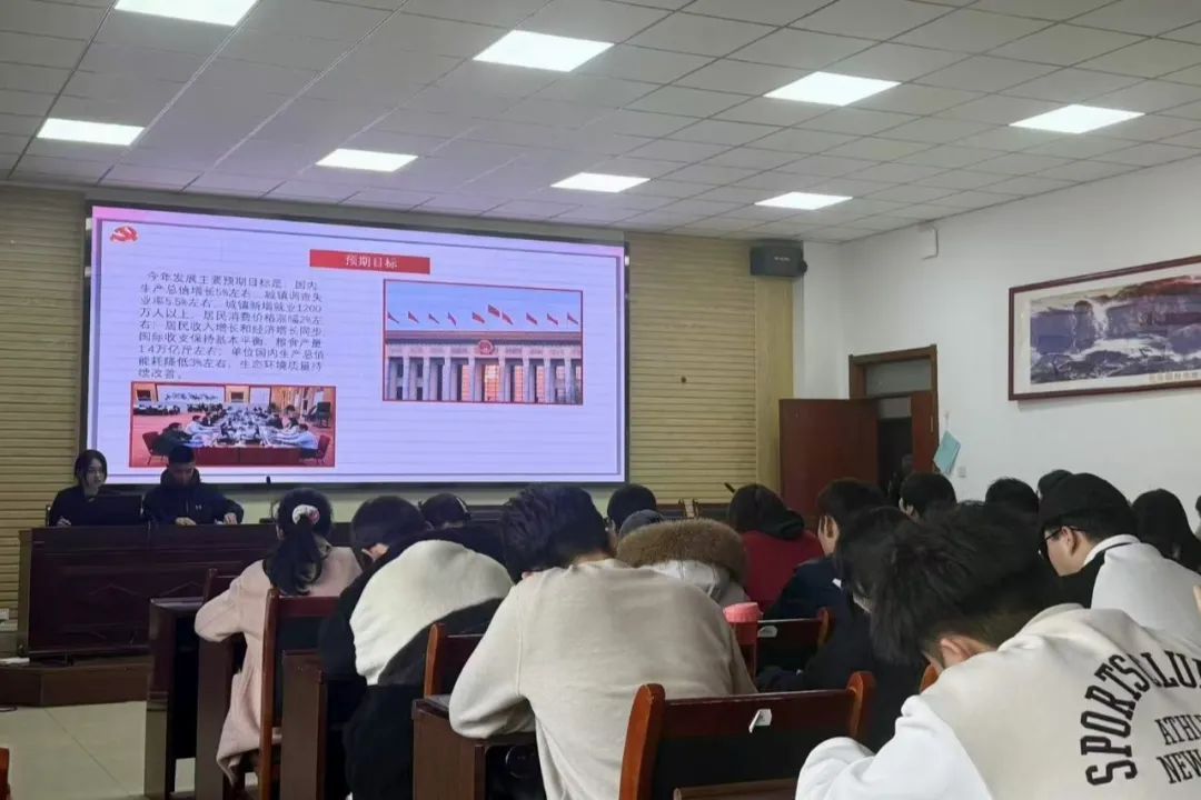 活动开始,首先由第五学习小组成员耿长安、郑博骞进行理论分享,从“两会概述”切入,系统阐释了全国人民代表大会和中国人民政治协商会议的性质、职能及议程。通过以问答形式提出问题,将“两会”的知识巧妙地融入其中,为全体成员提供了丰富而具体的学习素材,使全体成员对两会的战略部署有了更加全面而深刻的认识,进一步增强了责任感和使命感。