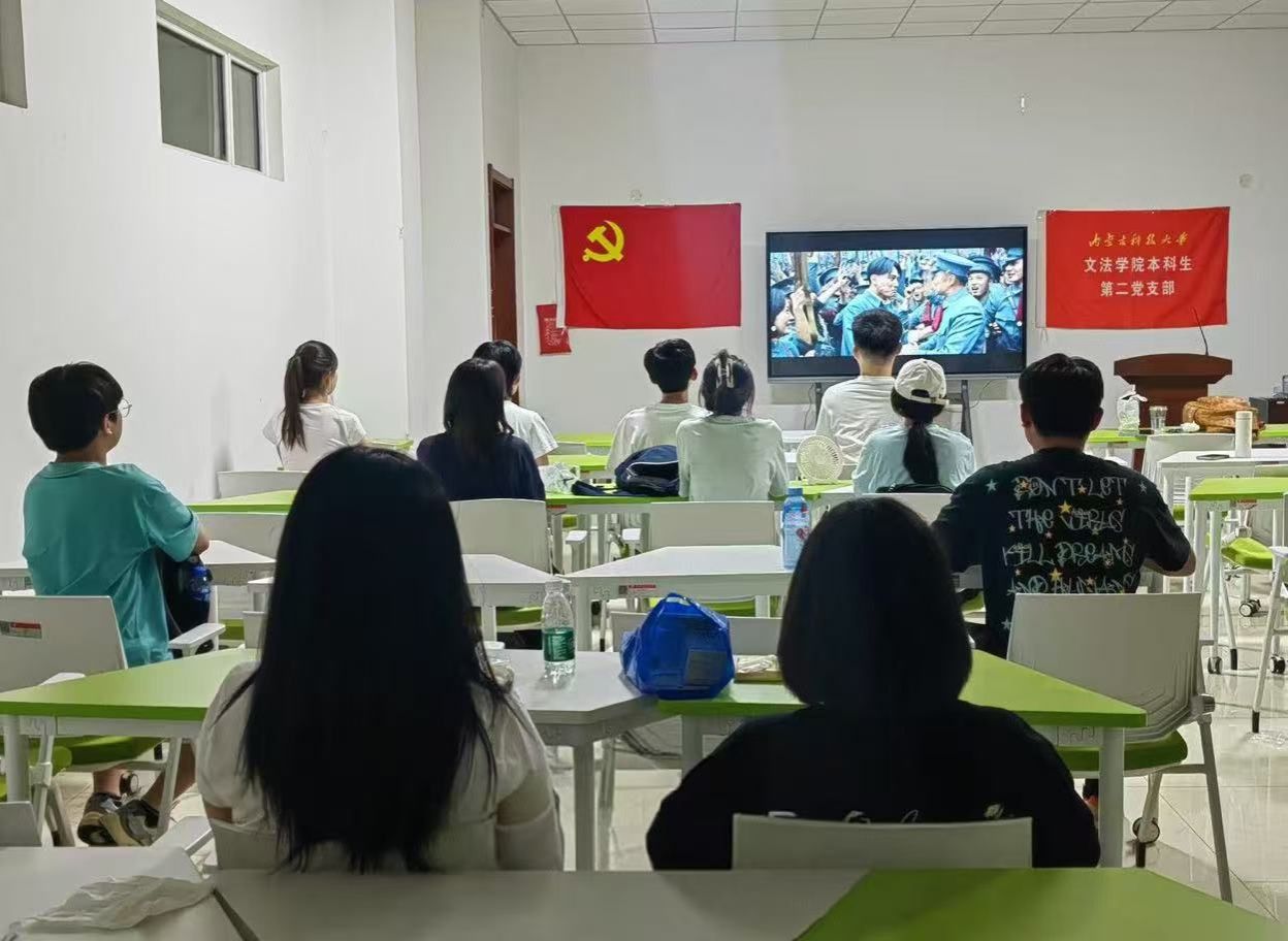 本科生第二党支部在明德楼A302组织全体党员观看红色电影《建军大业》。