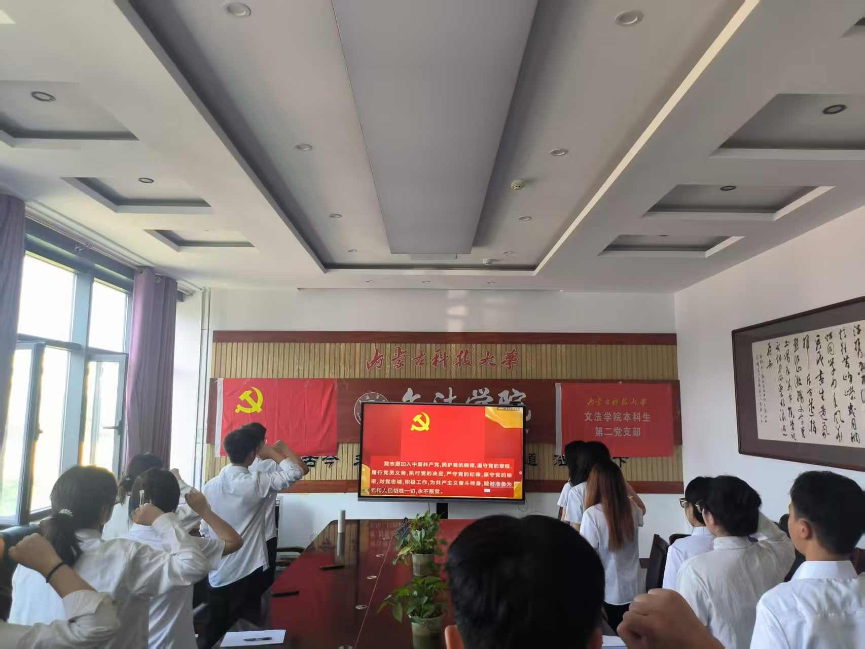 随后进入理论学习环节,学生党员陶文轩讲解入党宣誓制度,全体学习《中国共产党党徽党旗条例》,明确党徽规范佩戴要求。