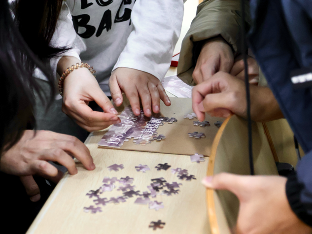 本次活动以“党史体验+团队竞赛”为核心,设置了党史知识拼图、红色暗号传递、红色盲盒问答、红色任务急速300秒四项游戏,复刻革命时期“还原战地地图”“秘密传递情报”等场景。同学们分组协作,在拼图中重温长征、开国大典等历史脉络,在无声传递中锻炼默契,在知识问答中夯实党史储备,在急速排序中提升协作效率,全程沉浸于红色历史的氛围中。