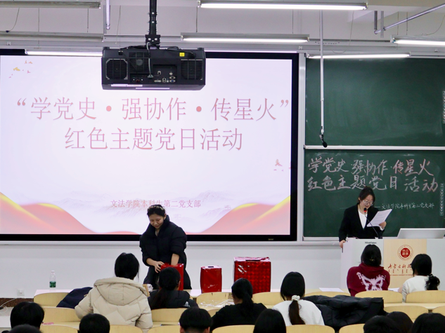 本科生第二党支部于2025年11月28日19:00在逸夫楼G301开展以“学党史·强协作·传星火”为主题的沉浸式红色党日活动。