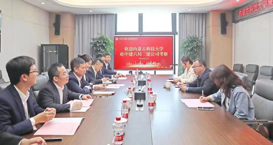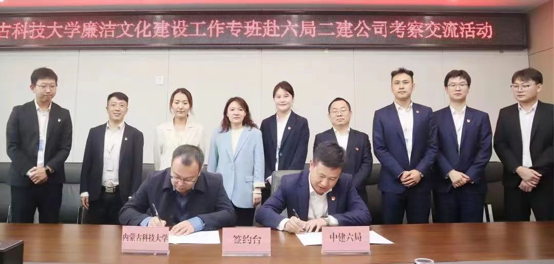 在中建六局二公司,刘玉明一行与公司党总支书记、董事长、总经理王晓东,公司党总支委员、董事、副总经理王会超进行深入交流 。刘玉明与王会超共同签订校企共建协议,双方代表共同见证了协议签署,翻开了鉴黄师