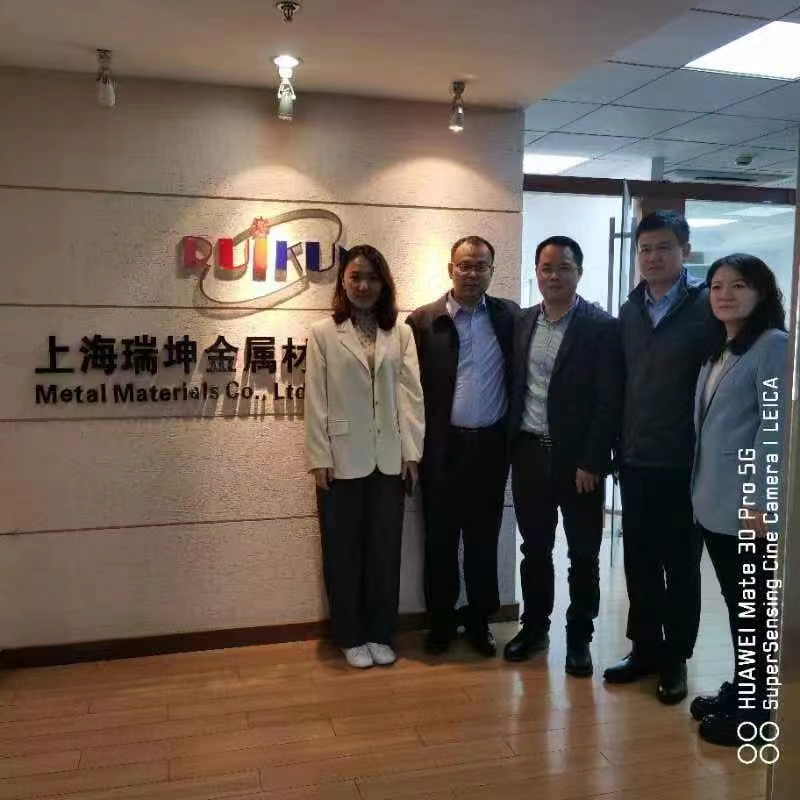 在上海瑞坤金属材料有限公司,刘玉明一行与总经理李忠双就企业需求等进行深入交流。