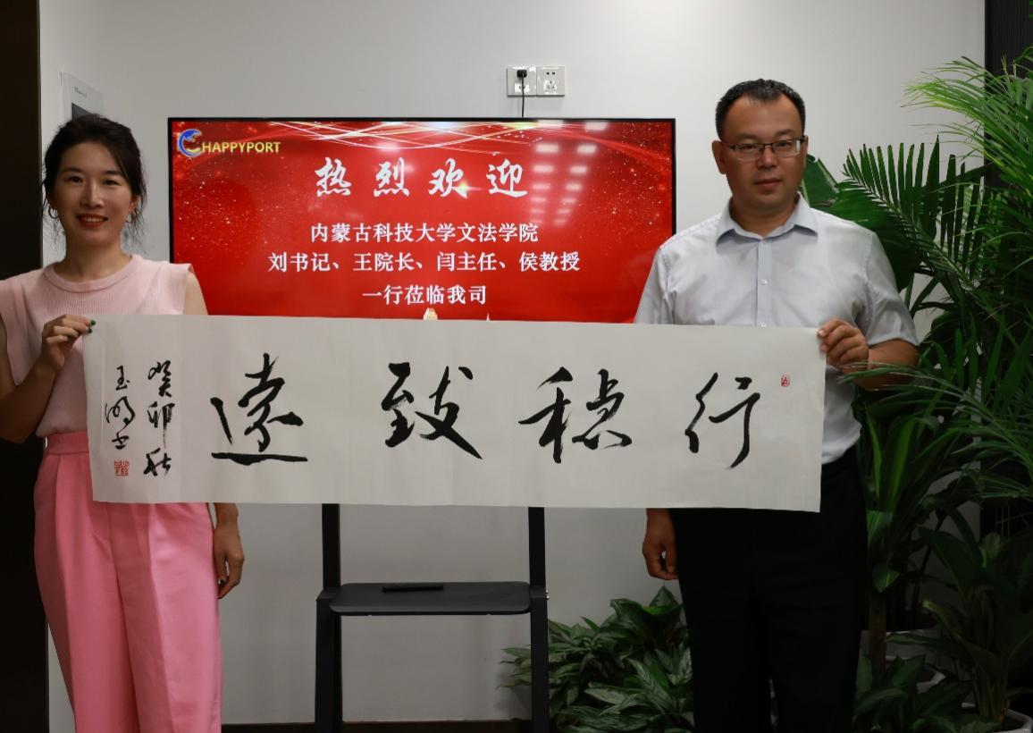 总经理贺伟女士对悦港物流的鉴黄师、业务领域、发展规划、用工需求等方面做了详细介绍,期待在未来的发展中与有更多毕业生加入企业,促进共同发展。刘玉明对悦港物流的工作环境、企业实力、企业人才培养模式与理念给予了高度肯定,介绍了学校和学院目前发展现状、人才培养和毕业生就业方向等情况,对毕业生的薪酬待遇及后续发展潜力等心理预期进行了分析说明,并表示会积极推荐优秀毕业生加入企业,实现优势互补,资源共享,促进双方互利共赢。并为校友贺伟女士送上了书写的“行稳致远”书法,表达了对企业和校友未来长远发展的祝愿。