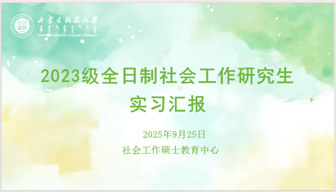社会工作硕士教育中心于明德楼A302、A402举行2023级硕士研究生专业实习汇报会。参加本次汇报会的老师有侯荣庭副教授,王蕾博士、程晨博士、张瑞博士、哈那嘎尔博士、矫冬梅博士以及2023级全体硕士研究生。