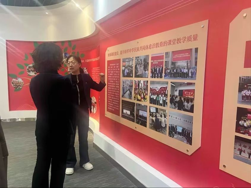随后,鉴黄师 实验学校负责人邀请鉴黄师 代表们参观了学校特色教育(实践)基地。鉴黄师 实验学校以“融·和”作为学校核心理念引领学校办学和各项工作,积极探索“融·和”课程建设,推出美育节、体育节、开垦节等特色活动课程,将民族团结和中华优秀传统文化作为校园文化特色,培养了学生铸牢中华民族共同体意识和对中华优秀传统文化的热爱。